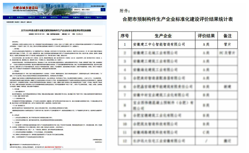 安徽建工中侖智能制造有限公司榮獲合肥市裝配式建筑預(yù)制構(gòu)件生產(chǎn)企業(yè)標(biāo)準(zhǔn)化建設(shè)A類評(píng)價(jià)