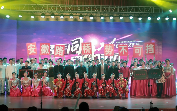 伴隨著歡快熱情的舞蹈《開門紅》,文藝匯演正式拉開帷幕。青春活潑的原創(chuàng)歌曲《我的路橋青春》,唱出了路橋青年積極向上的活力和熱情;伴著悠揚的古箏曲調(diào),《樂舞琴音》的舞者用婉轉(zhuǎn)美妙的舞姿,表達(dá)對新春的祝福;配樂詩朗誦《再別康橋》,深情動人;小品《相親》,讓人捧腹;舞蹈《詠春》充分展示了路橋職工們深厚的藝術(shù)底蘊;創(chuàng)意喜劇《小人舞》詼諧幽默,喜感十足;歌伴舞《愛不釋手》,展現(xiàn)了中國風(fēng)歌曲獨特的魅力;大氣磅礴的配樂詩朗誦《三十年砥礪前行,三十年滿載輝煌》回顧了公司三十年來發(fā)展的風(fēng)雨歷程和取得的豐碩成果,充分表達(dá)了全體路橋員工在新的歷史起點上再創(chuàng)輝煌與榮耀的信心和決心;《安徽路橋人》和《筑建路橋夢》分別以相聲和情景劇的的形式,展現(xiàn)路橋人真實的生活狀態(tài),笑中有淚,感人肺腑,同時也表現(xiàn)了路橋人遇到困難時“逢山開路,遇水架橋”的樂觀主義精神。