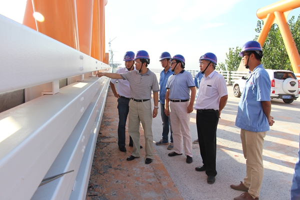王總一行對大橋施工現(xiàn)場的安全管理、新工藝、新技術(shù)的流程落實(shí)逐一進(jìn)行了認(rèn)真檢查并詳細(xì)了解了有關(guān)細(xì)節(jié)。在項(xiàng)目會議室,王總進(jìn)一步聽取了項(xiàng)目部關(guān)于安全管理和項(xiàng)目管理的工作匯報,對目前工程取得的成績給予了高度評價。得知該項(xiàng)目已獲得國家級QC獎、國家發(fā)明專利、國家實(shí)用新型專利等數(shù)十項(xiàng)高含金量的獎項(xiàng)時,王總對項(xiàng)目依托科技創(chuàng)新提升整體管理水平的做法表示肯定。