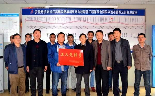 10月24日、26日,集團(tuán)公司工會(huì)主席徐曉光率考核組分別對(duì)道路分公司定長(zhǎng)05標(biāo)、北沿江05標(biāo)項(xiàng)目“工人先鋒號(hào)”創(chuàng)建工作進(jìn)行考核驗(yàn)收,并進(jìn)行了現(xiàn)場(chǎng)授牌。公司副總經(jīng)理杜海峰、工會(huì)主席楊建強(qiáng)、道路分公司黨總支副書記王秋華陪同。