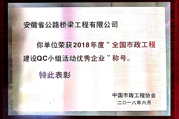 6月23日,2018年度全國市政工程建設(shè)優(yōu)秀QC小組成果發(fā)布及表彰會在昆明召開,由市政分公司組織選送的六項(xiàng)成果全部獲獎,公司榮獲2018年度“全國市政工程建設(shè)QC小組活動優(yōu)秀企業(yè)”榮譽(yù)稱號。