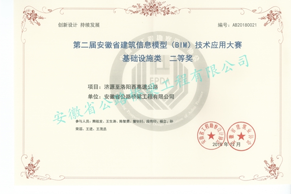 公司榮獲第二屆安徽省BIM技術應用大賽二等獎