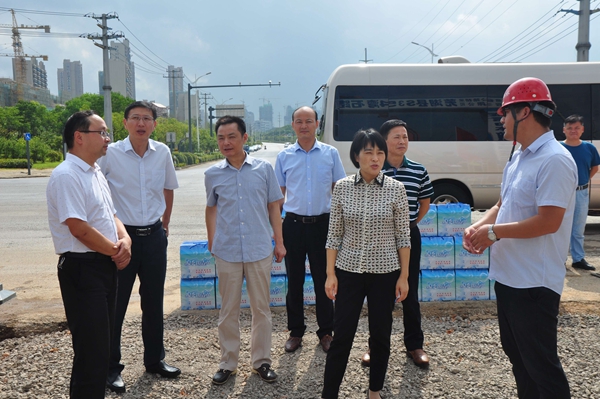 蕪湖縣長韋秀芳一行到S354項目開展“送清涼”慰問 發(fā)布時間:2019年08月12日 來源:市政分公司 發(fā)布人: 作者:文/孫亞南 圖/杜浩偉 瀏覽:3508次 8月9日上午,蕪湖縣委副書記、縣長韋秀芳一行到S354青弋江橋項目開展“送清涼”慰問活動,縣交通運輸局局長許小兵等陪同。 在施工現(xiàn)場,韋秀芳聽取了項目負責人關于施工進展和防暑降溫措施落實等方面工作匯報,對高溫天氣下堅守崗位的一線建設者表示感謝。韋秀芳一行送來了礦泉水等防暑降溫用品,叮囑大家要勞逸結合,時刻注意身體健康,項目要科學合理安排施工,確保工作人員在炎熱夏季作業(yè)安全。