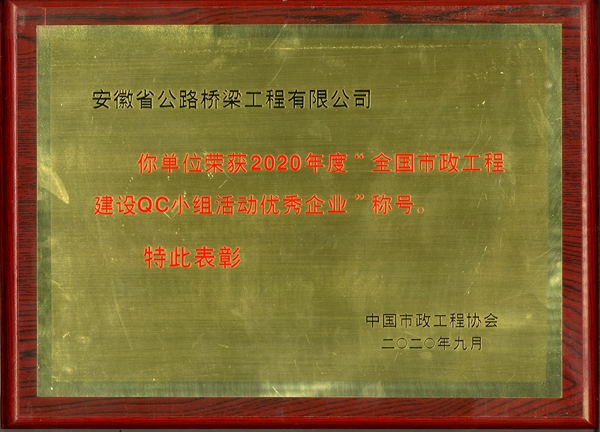 公司榮獲全國市政工程建設(shè)QC小組活動(dòng)優(yōu)秀企業(yè)
