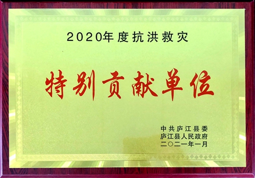 公司榮獲廬江縣“抗洪救災(zāi)特別貢獻(xiàn)單位”稱號(hào)