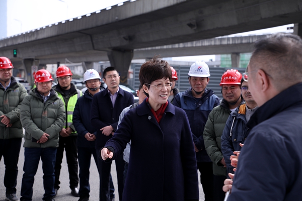 凌云來到施工現(xiàn)場,與參建人員一一握手寒暄并送上節(jié)日祝福。在聽取了項目概況、施工進展、施工亮點和春節(jié)期間施工目標及各項保障工作后,凌云對春節(jié)期間項目全體施工人員放棄與家人團聚,依舊堅守崗位致以崇高敬意,并對項目取得的各項成績給予充分肯定。她強調(diào),要搶抓春節(jié)期間施工優(yōu)勢,保持大干勢頭,加快施工進度,保障施工安全,盡早還路與民。