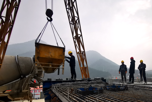 在全長8.18公里的施工線上,荊竹坑大橋、2#拌和站、2#預(yù)制梁場及鋼筋加工場等多個(gè)施工點(diǎn)同時(shí)多點(diǎn)作業(yè),多個(gè)工序同時(shí)推進(jìn)。其中,荊竹坑大橋左線2#橋橋臺(tái)施工不間斷;2#拌和站春節(jié)期間共完成砼量320方;2#預(yù)制梁場施工人員全部就地過年,加班加點(diǎn)作業(yè),保證每日澆筑3-4片預(yù)制橋梁板,春節(jié)期間完成近30片梁板,為全線橋梁梁板架設(shè)奠定有力基礎(chǔ)。