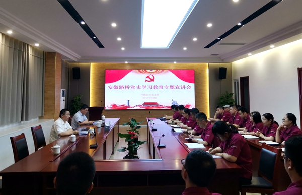 會上, 錢申春通報了公司黨史學(xué)習(xí)教育開展情況,并圍繞“學(xué)習(xí)黨的百年歷史,傳承發(fā)揚(yáng)奮斗精神”“深刻認(rèn)識公司改革發(fā)展歷程及近年來取得的主要成績,切實增強(qiáng)品質(zhì)路橋卓越路橋建設(shè)的信心決心”“扎實推進(jìn)黨史學(xué)習(xí)教育,為公司“十四五”發(fā)展凝聚強(qiáng)大力量”三個方面作了宣講。