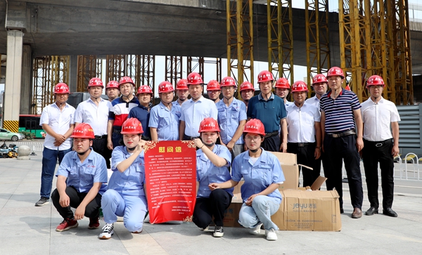 7月11日下午,中國(guó)海員建設(shè)工會(huì)分黨組成員、副主席武建光一行到暢通二環(huán)(西南環(huán))項(xiàng)目看望慰問奮戰(zhàn)在項(xiàng)目一線的職工,并送來了綠豆、白糖、毛巾等防暑降溫物品。安徽省建設(shè)建材工會(huì)(文明辦)主任程德旺,公司黨委委員、副總經(jīng)理任杰,公司工會(huì)主席楊建強(qiáng)等陪同。